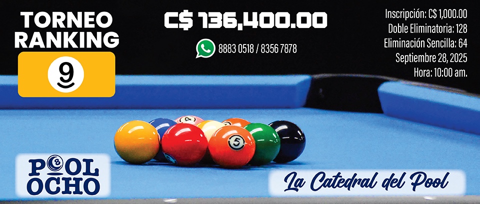 ¡Domina la mesa de billar! Únete al torneo, demuestra tu talento. ¡Grandes premios te aguardan! Inscríbete ya y compite por la victoria. Demuestra tu destreza y gana. ¡No te lo pierdas, te esperamos!